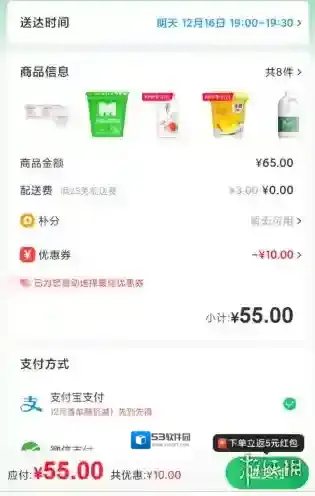 5、完成后,返回页面,就可以看到已经通过优惠券,减免费用了。