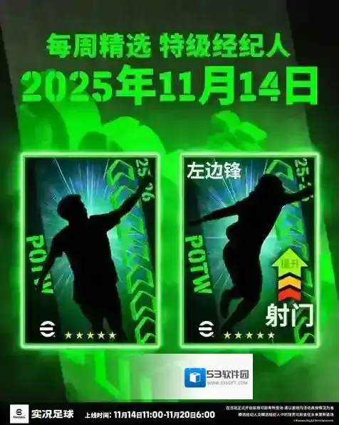 每周精选 特级经纪人(11.14~11.20)即将上线,你将有机会获得本周在赛场表现优异的精选球员。