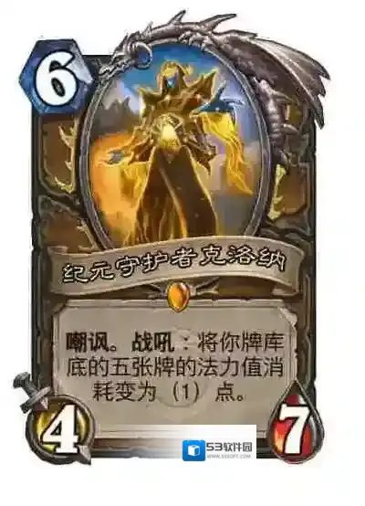 效果:嘲讽。战吼:将你牌库底的五张牌的法力值消耗变为(1)点。