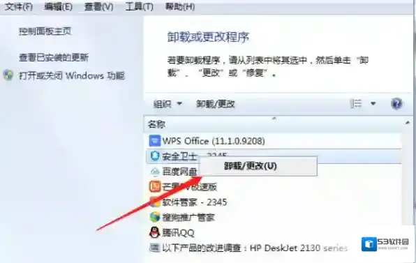 2. 之后在里面找到2345安全卫士,点击卸载/更改;