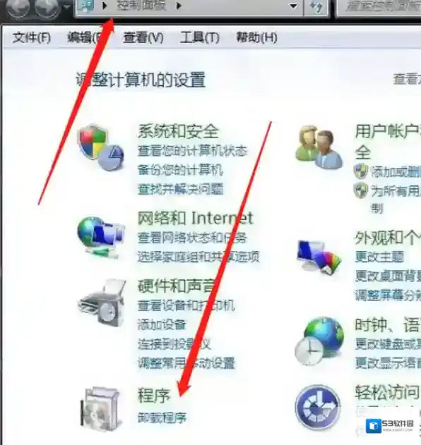 1. 点击左侧开始按钮,打开控制面板,找到卸载程序;
