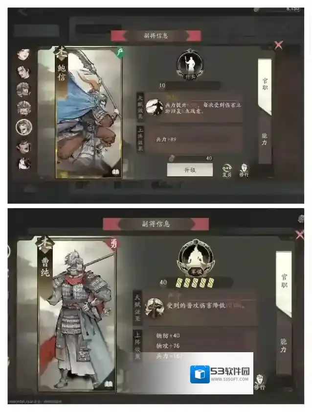 分支选择:许褚的两个分支强度都在线。金刚线有着高暴击类似狂战士,而虎贲卫线更偏向纯坦,可以根据自己的其他主将阵容选择,不同分支的技能选择也不同。