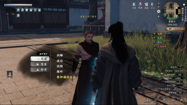三个选项拜师任意选一个,然后会自动来到师傅旁边,交谈师傅修行后来到嵩室山守门弟子参加诵经大会