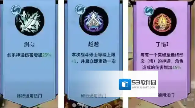 剑心(雷魄等):直接提高修士本系神通的伤害,非常简单粗暴的提升。
