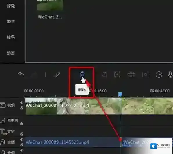 7、我们也可以直接单击选中,然后点击“删除”按钮,就可以将裁剪出来的这段音频删除掉了。