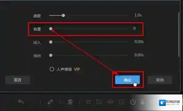 6、如果不想要这段音频文件,可以将音量修改为0,这样在播放到这部分的时候,就不会发出声音了。