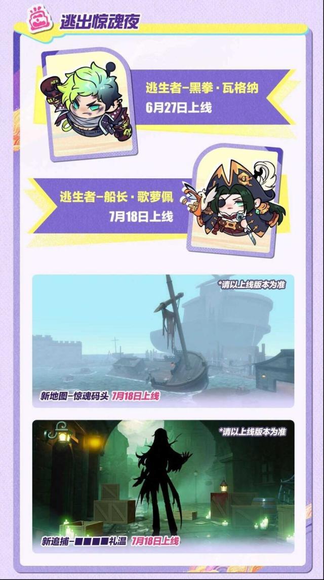逃出惊魂夜全新逃生者“黑拳·瓦格纳”、“船长·歌萝佩”即将上线,还有全新地图“惊魂码头”、全新追捕者蓄势待发!