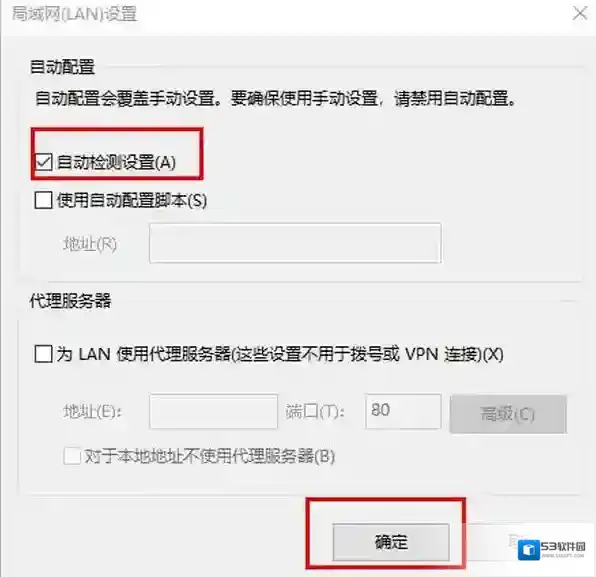 4、在局域网设置里把“自动检测”设置勾选上,然后点击确定保存就可以了。