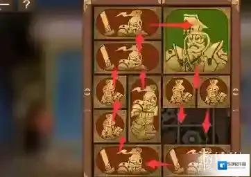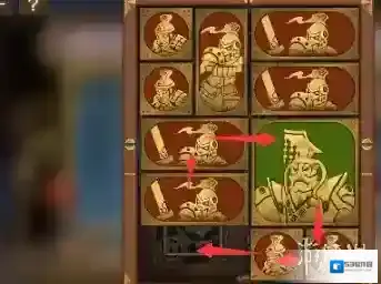 6、之后让将军下方的两个正方形向下移动,其上面的图形全部向下移动,左上角的图形向右移动,左边的所有图形全部向上。
