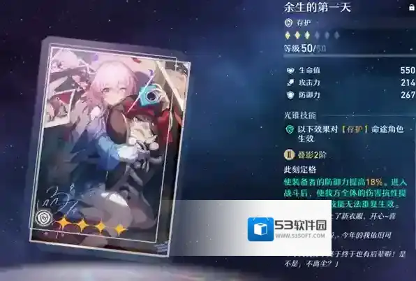 一张四星光锥,提升效果不错,对于队伍整体生存能力都有提升,在流光庭忆中可以用碎片兑换,满叠面板提升也巨大。