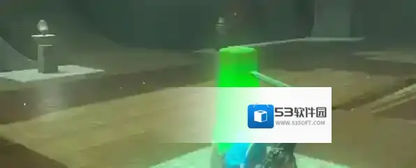2、然后攻击下图机关,等到他变成绿色以后,从旁边会滚落一个小球,从我们刚才搭建的台子上飞跃到对面。