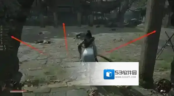 继续回到神龛旁,神龛对面有一个大院。先清理院内的敌人,再往左侧箭头的小路走。路的尽头会有一个坛子,打碎后你可以获得小药丸*1。接着回到大院的右侧,击败两名敌人后,可以在桌前找到穆桂英面人*1。这个面人物品虽然强力但是不建议使用,后续可以给NPC做任务。屋内还可以拾取到黯淡红羽。