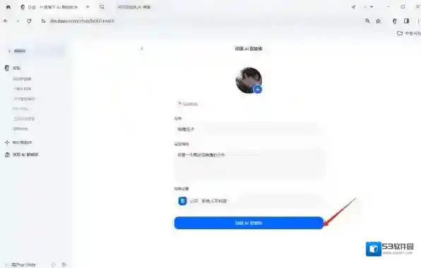 4.输入您想要为AI智能体命名的名称,以及对其的设定描述。此外,您还可以为AI智能体选择一个个性化的头像,并设置相应的权限。