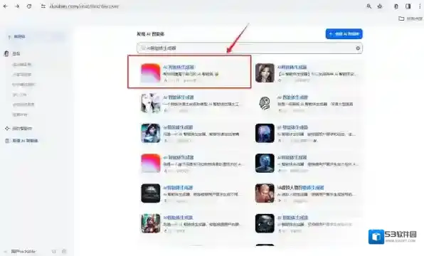 2.在对话框中搜索并选择“AI智能体生成器”。