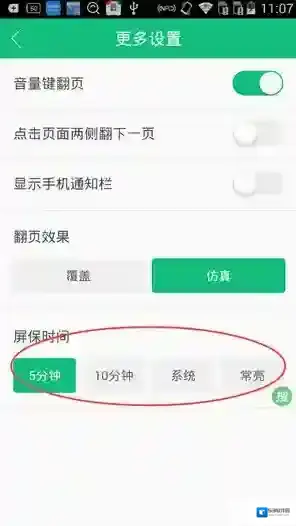 5、进入更多设置后,还会看到“屏保时间”,选择自己要设置的屏保时间即可。