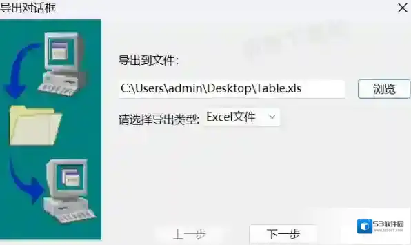 2.选择保存的位置,到处类型选择Excel文件,点击下一步。