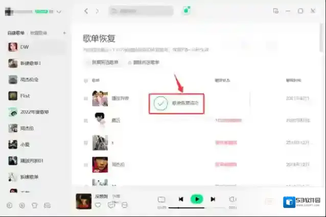 5.出现歌单恢复成功的提示后,即可恢复删除的歌单。