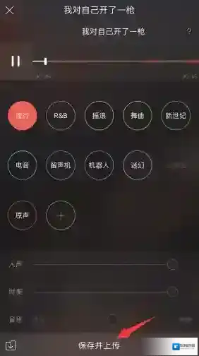 5、可以对录制好的歌曲进行调音,最后点击“保存并上传”,好友们就会看到你发起的合唱啦。