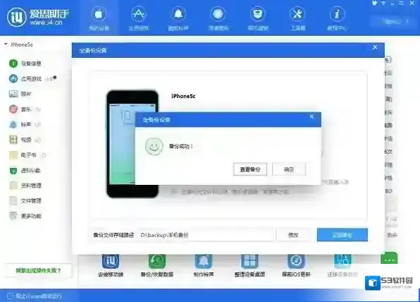 备份成功,iPhone手机数据备份完成,这时候爱思助手会弹窗提示备份成功。