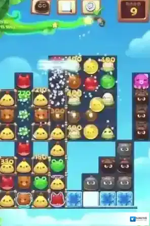 5、然后尽可能多地合成动物来击碎鸡蛋孵出小鸡来消除雪块障碍和褐色毛球。
