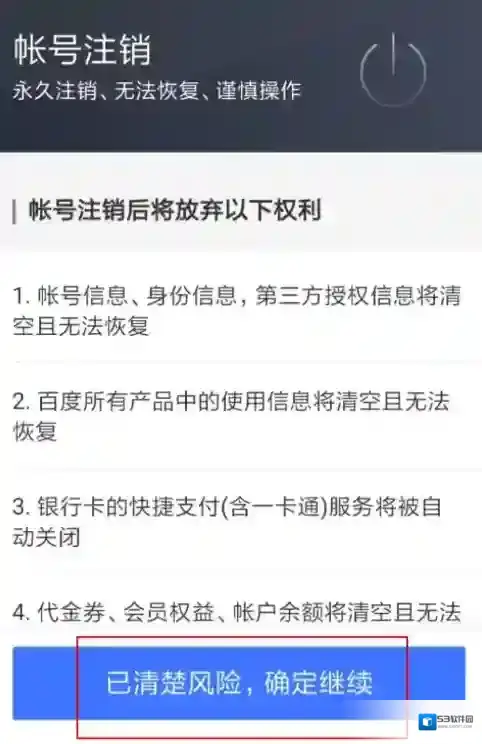 3、在这之后,选择页面底端的“已清楚风险,确认继续”按钮,这时候就可以成功注销百家号账号了,感兴趣的朋友都可以试一试!