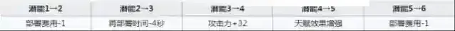破片杀伤:攻击范围内每存在一个敌人,自身攻击力+4%,最多叠加5次(6次)(精英二满潜能时数据,括号内为潜能加成)。