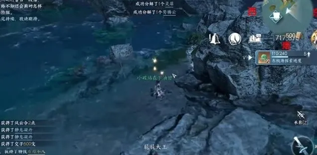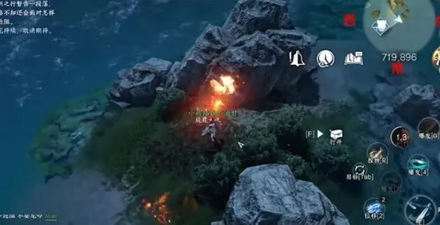 4、第四个宝箱位置在714 879,到达之后在大石块的旁边即可找到。
