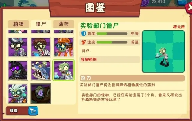 小个头的僵尸骑着平衡车,头戴墨镜,速度中等偏上,经常做一些高难度的动作,让自己看起来很酷,其实非常滑稽,特点就是携带防具。