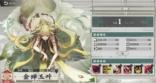 金蝉玉叶(红卡):由于这位特出级远击器者来自于东谷竞赛,需要一定的时间积累才能兑换(最快也要两周),因此,这位特初级远击器者仅作为山水人物镜或者鹿角立鹤的上位选择,等时机成熟时再培养上阵即可。