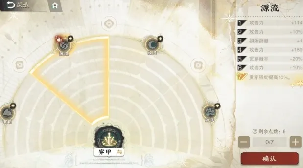 在选择穿甲学派的基础上,由于贯穿伤害与基础攻击力有关,因此选择源流分支加点更为合适。