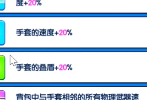 1、手套是一辅助功能比较强的武器,能够为附近的武器提供较高的攻速加成。