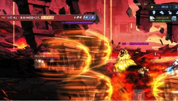 此时Boss开始读条火焰地狱,全屏生成岩浆,仅有地板为安全区