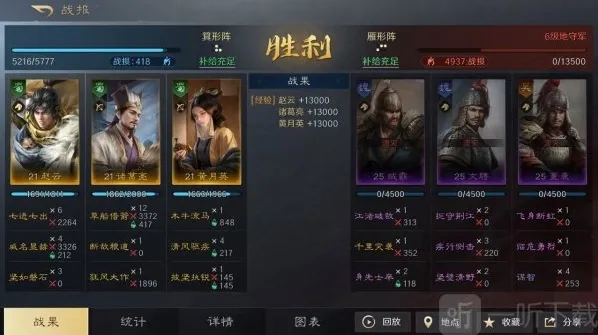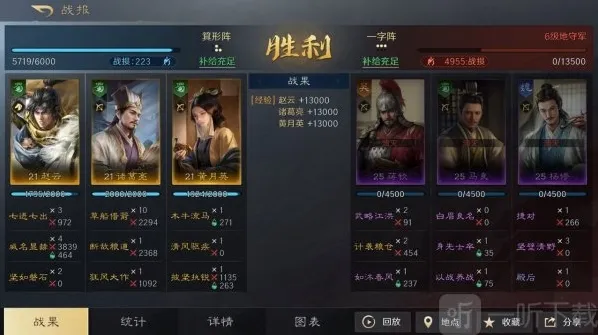 依靠赵云和诸葛亮的反击能力,搭配刘备持续稳定的治疗能力,在多回合的战斗中始终保持接近满兵力并结束战斗。