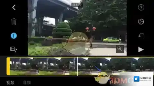 6、视频导入成功以后,先选中底部的视频片段,再点击左侧的叹号图标,如图所示