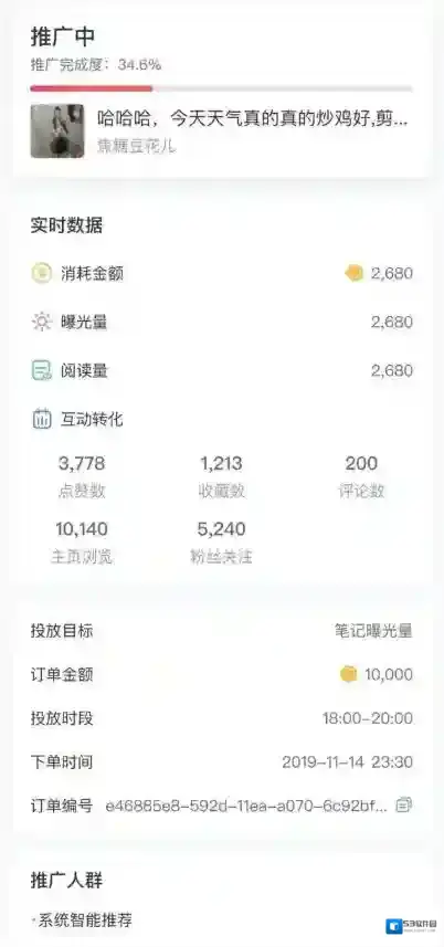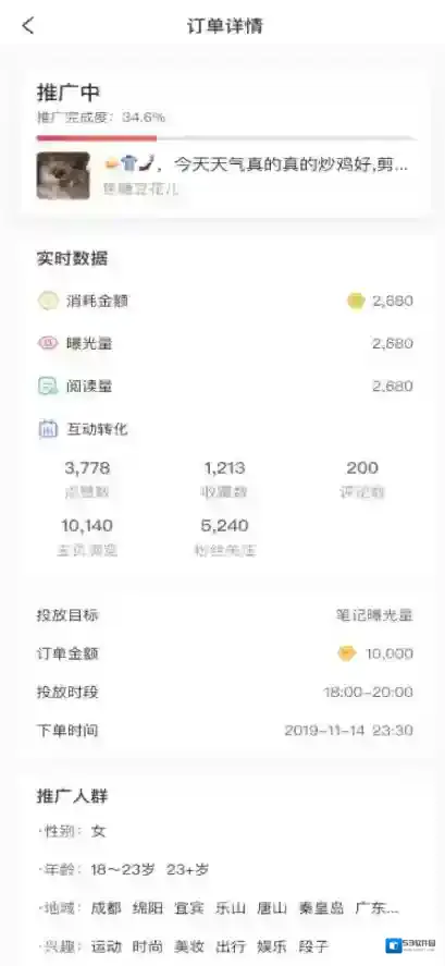 6、顶部进度条实时展示推广完成度,完成度=投放消耗金额/推广金额;