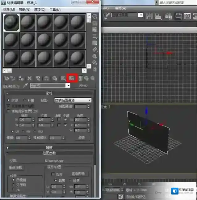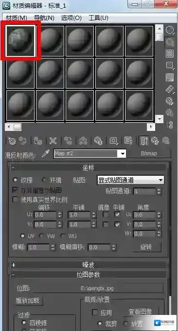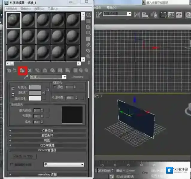 3、如图,使用快捷键“M”,打开“材质编辑器”,选中第一颗材质球