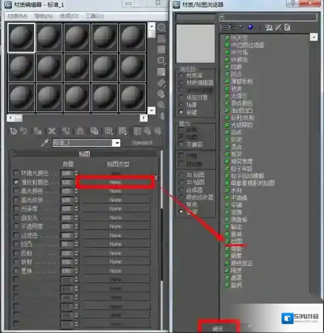 6、图1,点击要要上贴图的物体,图2,点击“将材质指定给选定对象”,图3,点击“在视口中显示表转贴图”