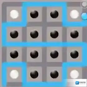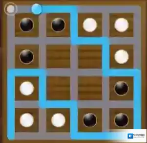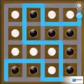 星痕棋盘需要用一笔将黑白两子划分到两边,白与白一边,黑与黑一边,就算成功了,所画线段一边只能有一个颜色。
