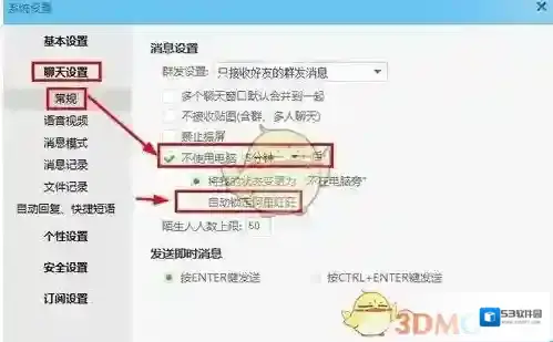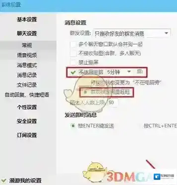 6、当然我们也可以设置指定的时间,不使用的话,自动锁定。我们可以在系统设置的聊天设置中将不使用电脑多长时间后自动锁定阿里旺旺。