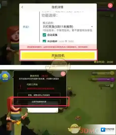 6.设置好脚本功能,点击开始挂机立即开始离线托管,即可开始离线挂机啦!