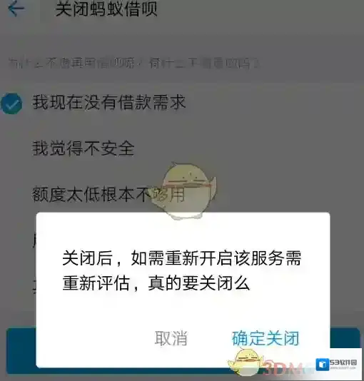 3、在页面下方的输入框内输入“关闭蚂蚁借呗”,点击发送。
