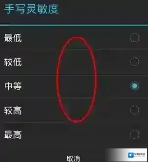 在弹出的手写灵敏度设置界面中根据我们的情况调整手写灵敏度的灵敏程度。