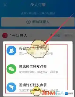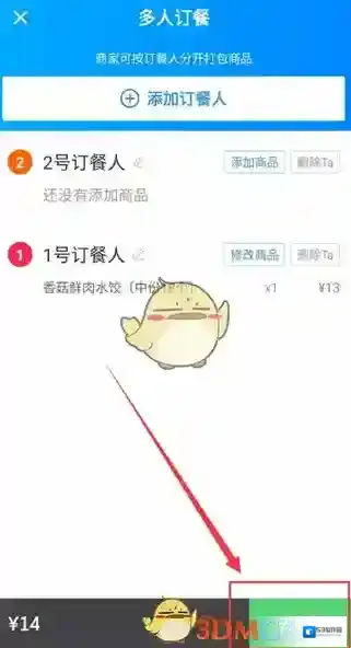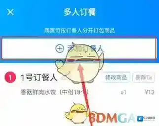 4、接着点击弹出的页面底部的商品如需分开打包,请使用多人订餐。