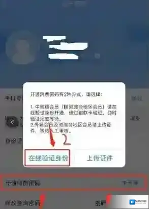 进入账号管理界面,点击开通消费密码,我们选择在线验证,如下图所示