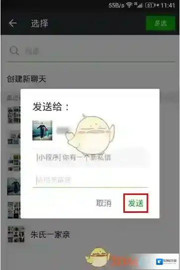 六、最后,选择一个你想将这条私信发送到的朋友就行了。