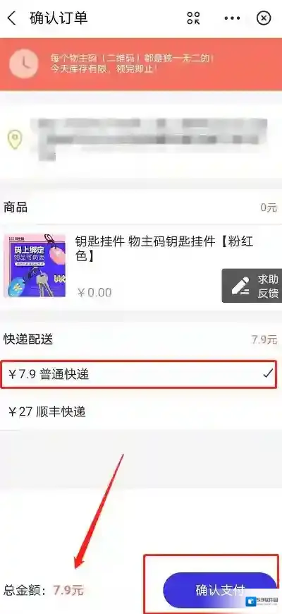 6、注意:虽然商品是不需要钱的,但是还是需要支付运费的哦~