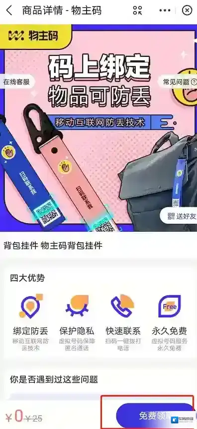 3、进入页面后就有关于物主码的详细介绍以及产品,大家选择自己想要购买的产品点击右侧“获取”。