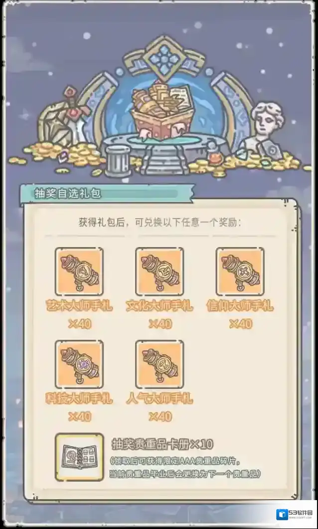 活动期间,每进行1次抽奖,可获得1个积分。累积对应的活动积分,可获得以上奖励。(特别说明:橙色SSS贵重品-约翰威廉的塑像将于本期“抽奖嘉年华”活动结束2个月后,进入3号抽奖机奖池中)抽奖自选礼包