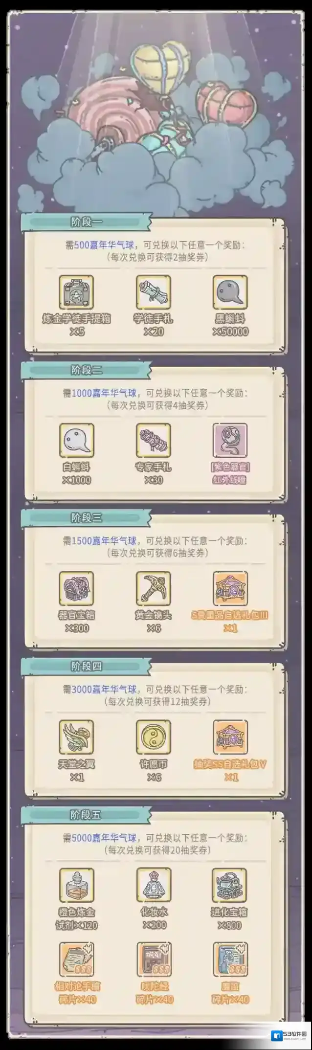 奖励共分为5阶段,每个阶段有2-3种奖励可以兑换;