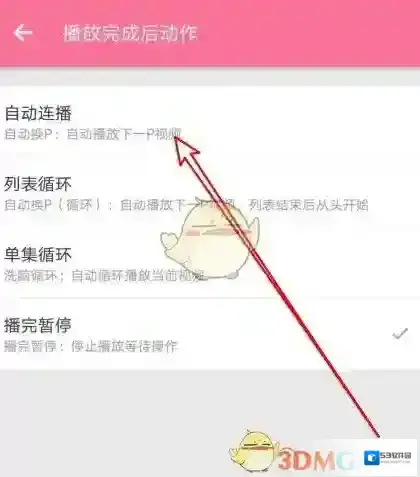 5、接下来在弹出的“播放完成后动作”的页面,在页面中选择“自动连播”的选项即可。
